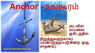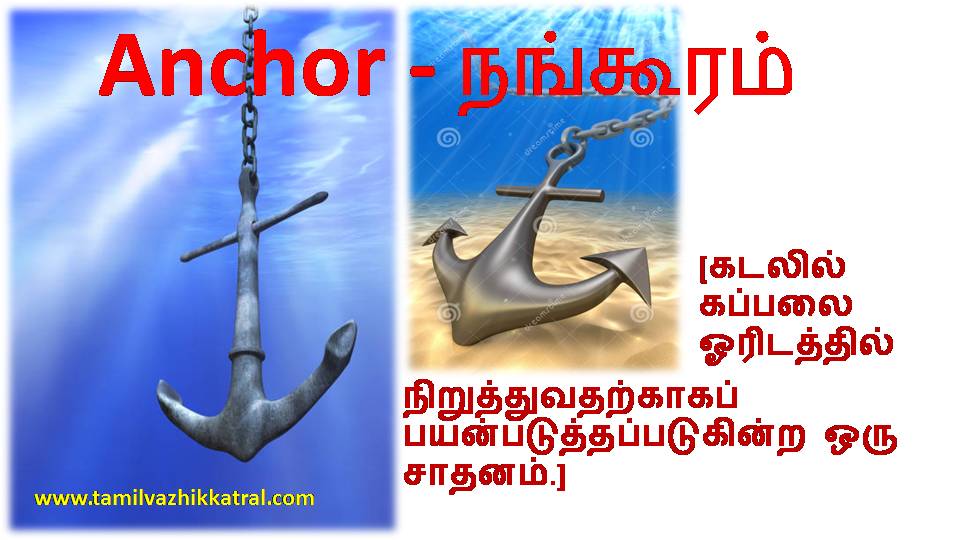– நங்கூரம் [கடலில் கப்பலை ஓரிடத்தில் நிறுத்துவதற்காகப் பயன்படுத்தப்படுகின்ற ஒரு சாதனம்]