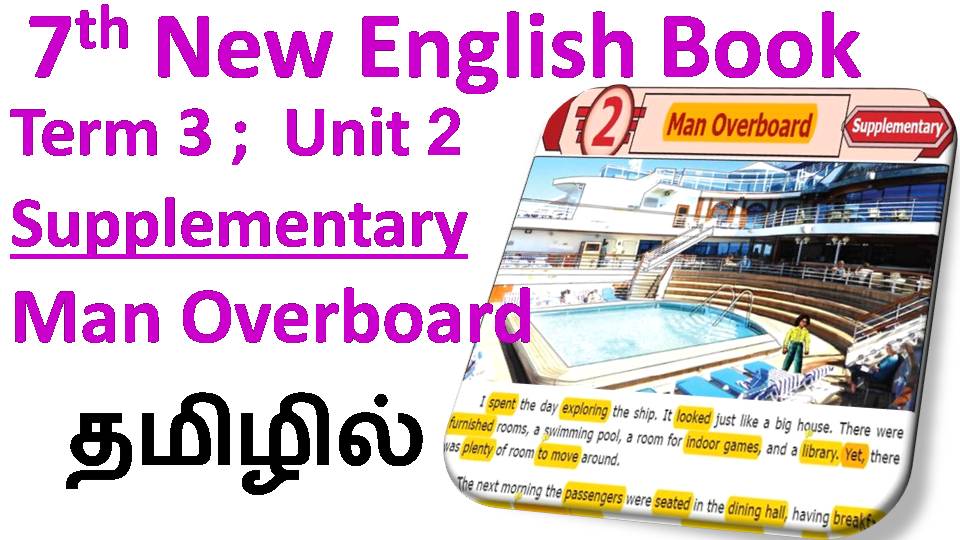 சமசீர் கல்வி புத்தகம் ஏழாம் வகுப்பு ஆங்கிலப் பாடம், 7th english samacheer kalvi term Supplementary 3 unit 2 , 7th New English Samacheer Bookback exercises, 7th New English Samacheer Book 1 marks, 7th New English term-3 unit-2, Man Overboard 8th English samacheer book, Supplementary Man Overboard in Tamil, TNPSC/Tet exam one marks, Trb/Group exam one marks, Man Overboard exercise answer in Tamil, 8th Term 3 unit 2 bookback exercises, 7th samacheer grammar in Tamil, 7th term 3 unit 2 bookback question & answers in tamil, 7th book Man Overboard lesson 1 marks in tamil, tamil vazhik katral videos, 7th english bookback exercises questions and answers, 7th english samacheer kalvi english guide, 7th samacheer kalvi english term 3 guide, 7th samacheer kalvi english term 3 pdf, 7th english term 3 notes 2019,